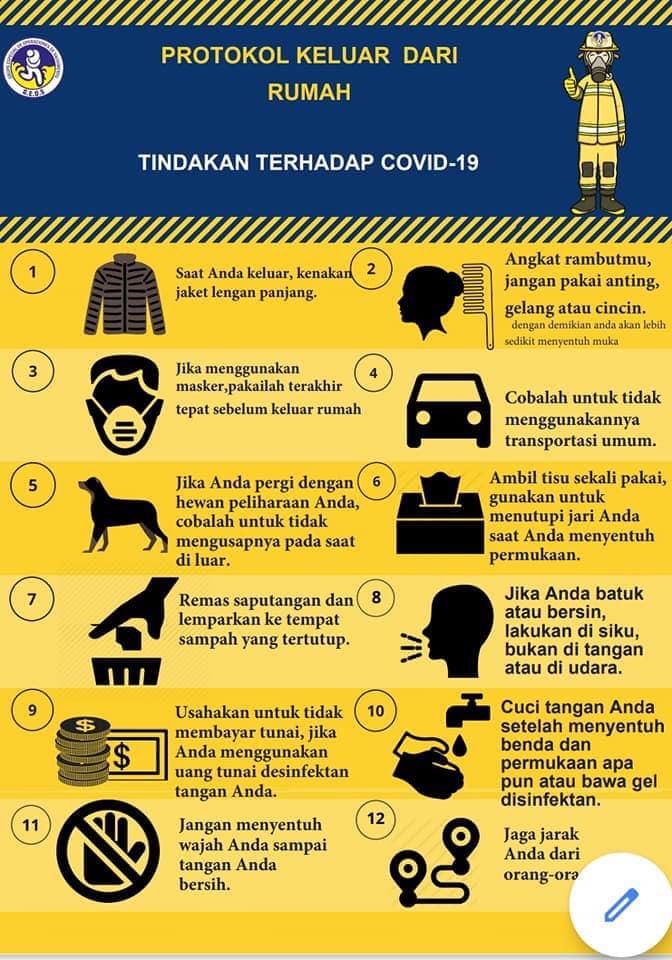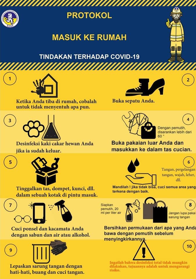 Di bawah ini ada protokol keluar dari rumah dan masuk ke rumah yang dapat kita semua ikuti agar dapat mengurangi resiko terpapar virus korona ini.